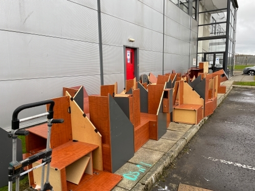 Our client was relocating to custom built premises and needed the old offices cleared. They didn't want to take any of their old furniture with them as it was to large, and to be fair, had served them well over the years. We removed and disposed of a large quantity of office furniture including desks, chairs, pedestals, filing cabinets and book cases. In addition there were welfare lockers, break-out seating, canteen seating and catering equipment. There was also a large quantity of Waste Electrical Equipment (WEEE) including keyboards, monitors, servers and computer towers.